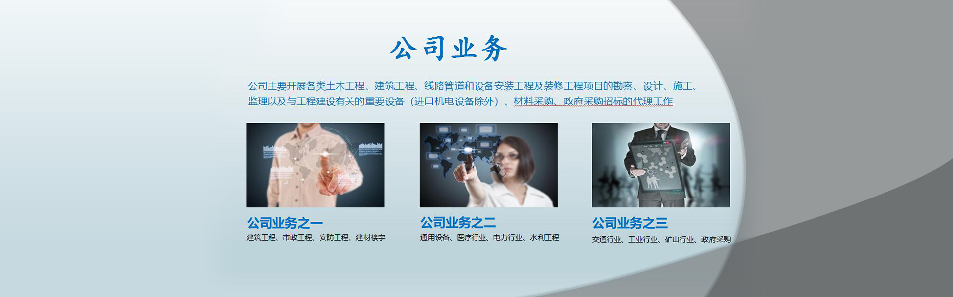 造價(jià)咨詢、監(jiān)理、施工、運(yùn)營與管理于一體的項(xiàng)目全過程創(chuàng)新型企業(yè)。